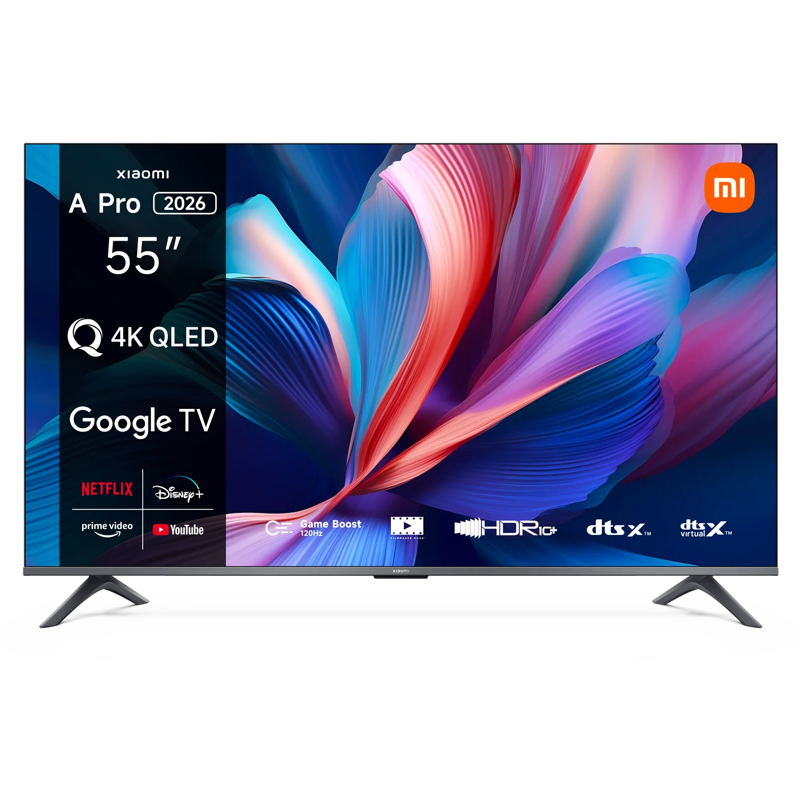 El Xiaomi TV A Pro 55″ 2026 es un televisor inteligente 4K QLED ideal para venta: cuenta con una pantalla QLED de 55″ con resolución 4K UHD (3840×2160), amplia gama de color DCI-P3 al 94 % y 1.07 mil millones de colores para imágenes vibrantes y detalladas con soporte HDR10+, HLG y Filmmaker Mode que mejora la experiencia visual. Integra Google TV™ con acceso a tus apps favoritas y control por voz con Asistente de Google, compatibilidad con Chromecast y AirPlay, y conectividad completa con Wi-Fi dual banda, Bluetooth 5.0, 3 HDMI (uno con eARC/ALLM), USB y Ethernet. El sonido es envolvente con Dolby Audio, DTS-X y DTS Virtual-X, todo en un diseño moderno con biseles ultradelgados y marco metálico que se adapta a cualquier sala.